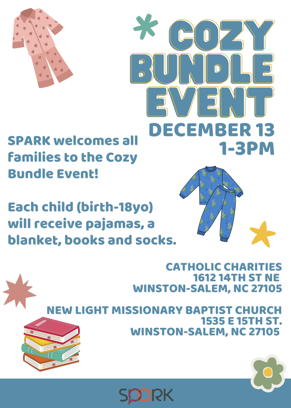 SPARK's Cozy Bundle Event is celebrating its 5th year and preparing to serve 350+ children. We need volunteers to help provide support at our pajama station, sock station, blanket and book bundle station, to serve hot cocoa, help neighbors shop for warm wear with the Community Coat Closet, be a Santa's helper and to greet families as they come through the door. We're excited to have the Community Coat Closet present to give warm wear to all family members and Santa! This is an event for any family who needs a cozy set of pajamas for ages newborn - 18yo. Community members don't have to register to shop for this event ahead of time. Please share with any family who needs this free resource. Volunteers need to sign up to volunteer.